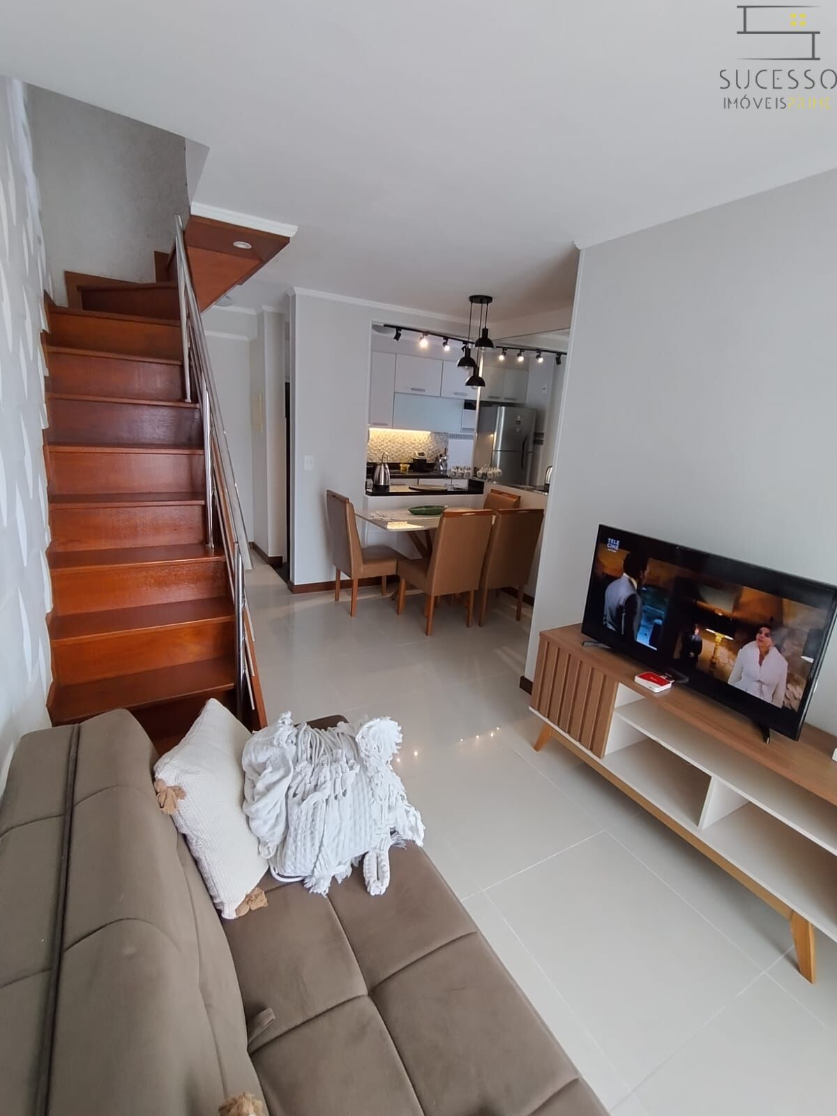 Sala de estar aconchegante com TV Smart.