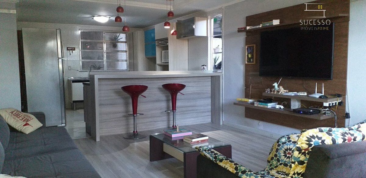 São duas casas geminadas, cada uma composta por sala, 2 quartos (sendo 1 suíte), cozinha americana com armários planejados, banheiro social e área de serviço. Garagem para 2 carros. Uma terceira casa com entrada independente.
