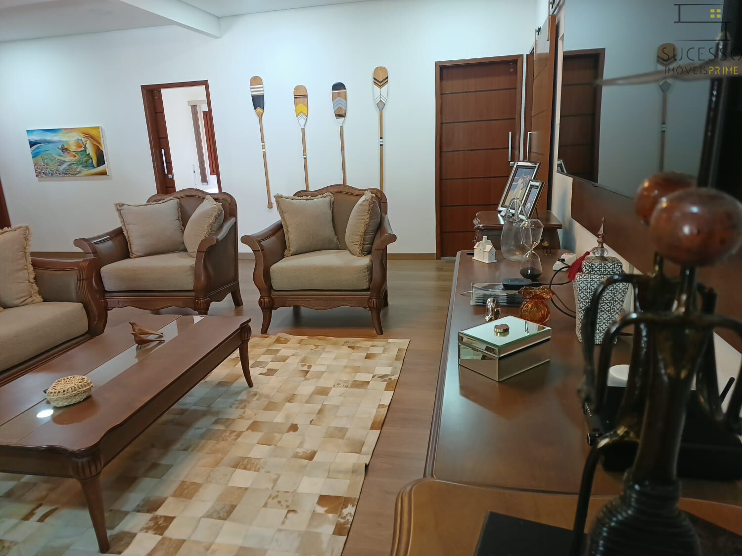 A casa conta com 4 quartos amplos, oferecendo conforto e tranquilidade para todos os hóspedes, além de ambientes elegantes e bem decorados, que combinam charme e funcionalidade.