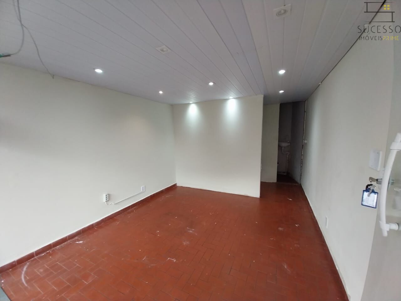 Loja com pequena cozinha e banheiro.